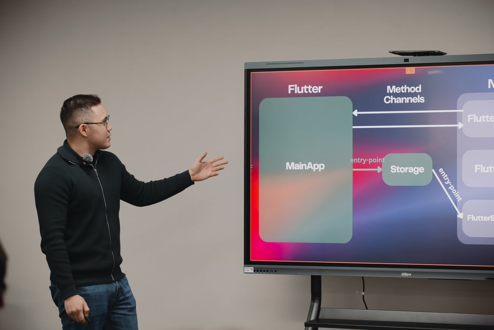 Flutter-приложение, внутрь него встраивают нативный SDK с нативным экраном, и поверх него снова нужно показать Flutter-экран. Как запускать Dart-код из нативного SDK и строить мосты между Kotlin и Flutter.